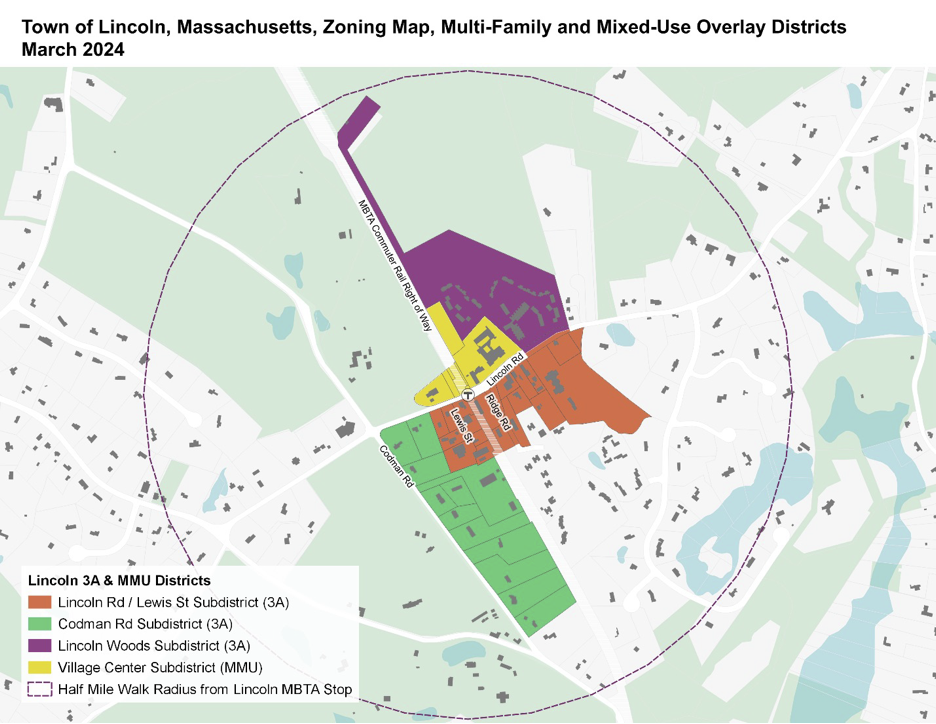 - At least 20% of our district must be within 1/2 mile of the Lincoln MBTA train station.